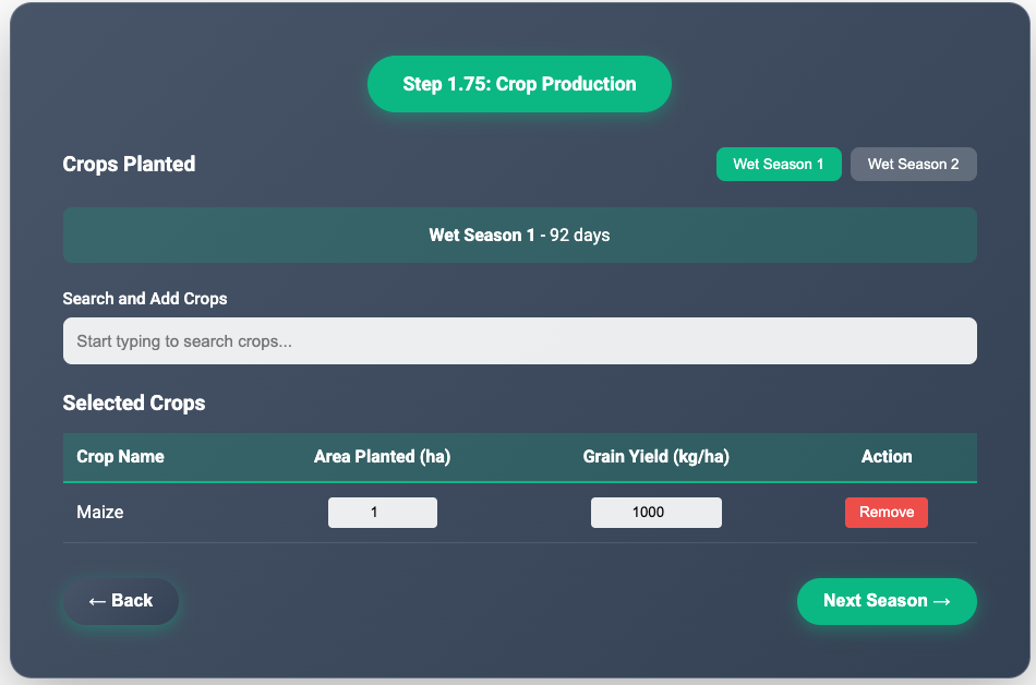 - Available crops: