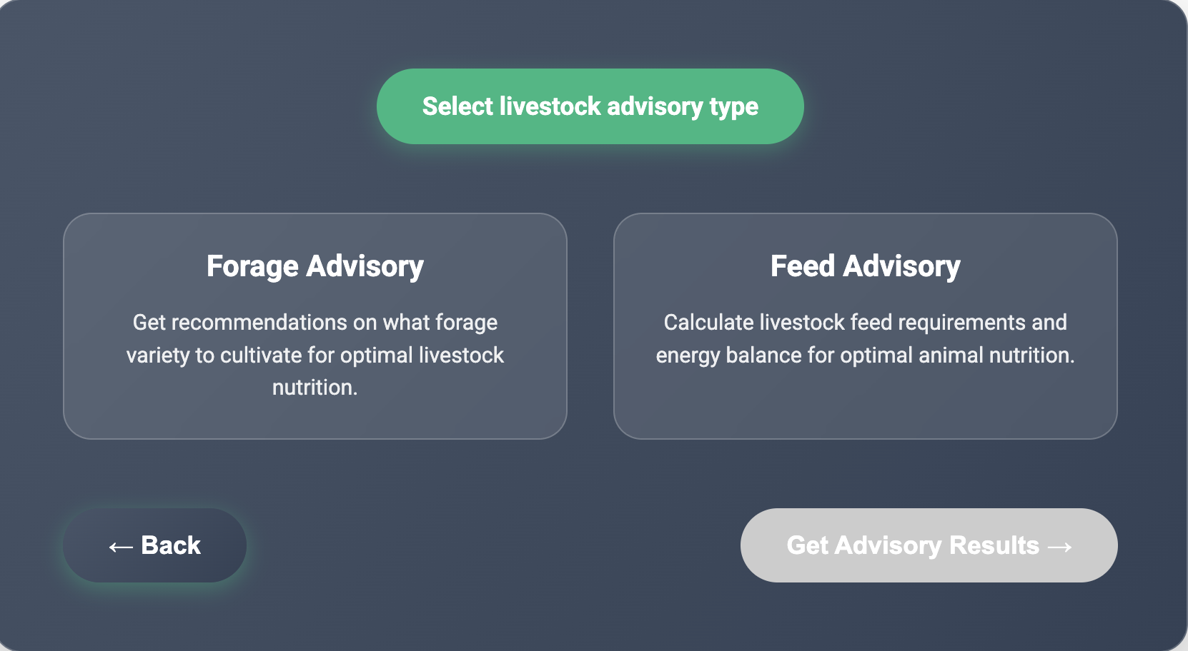 - Livestock feed advisory - Feed balance and forage