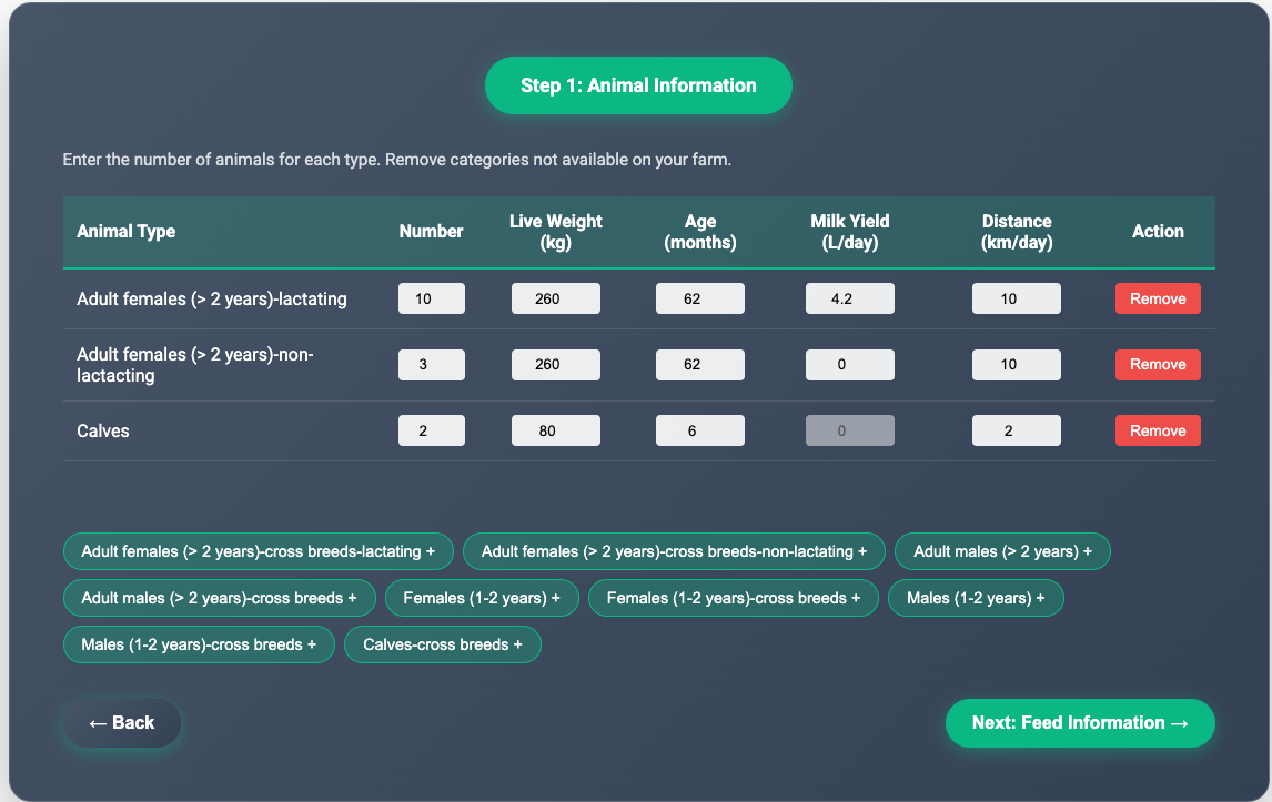 - Click “Continue” to proceed to livestock-specific steps (see Section