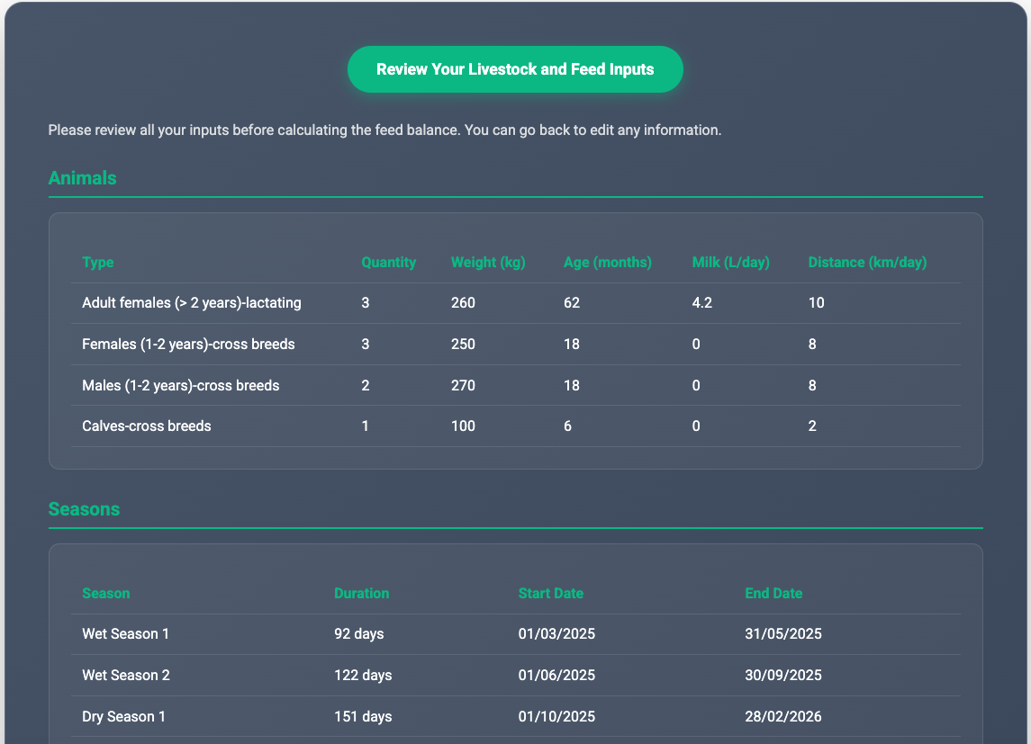 Livestock Feed Balance Results